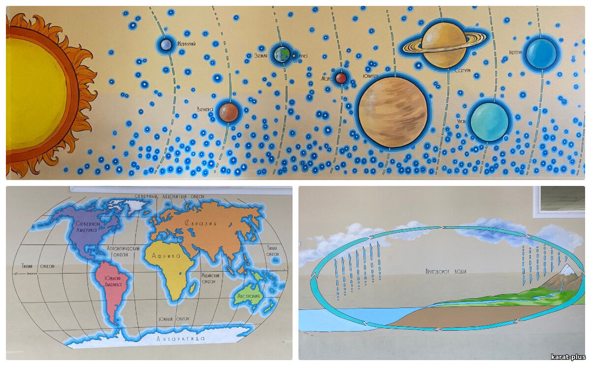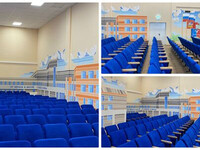 Новый актовый зал, роспись стен с использование резиновой краски, 2024 г.