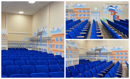 Новый актовый зал, роспись стен с использование резиновой краски, 2024 г.